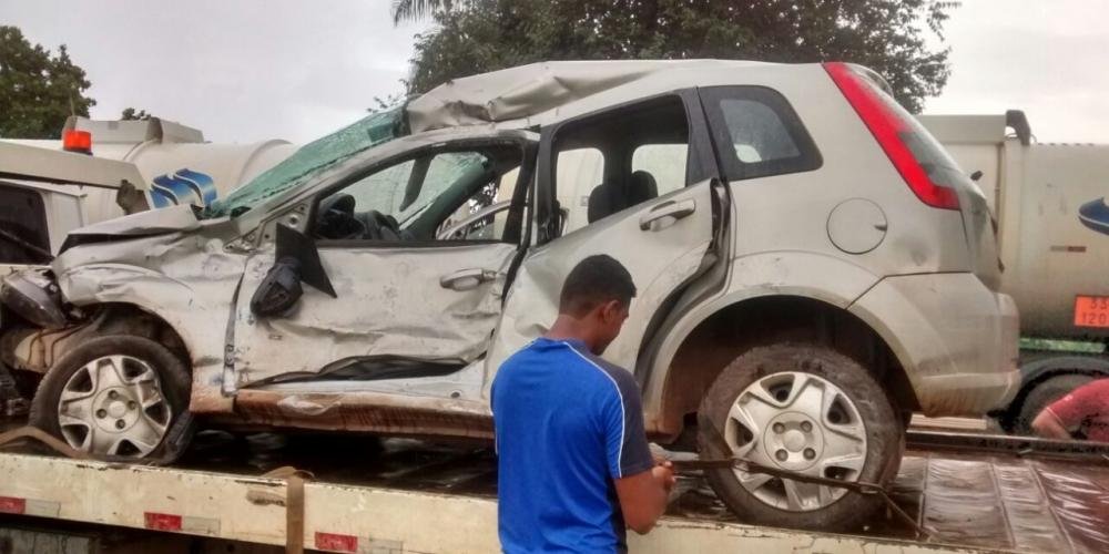 Colisão lateral entre Carreta e Fiesta mata idoso na BR 153