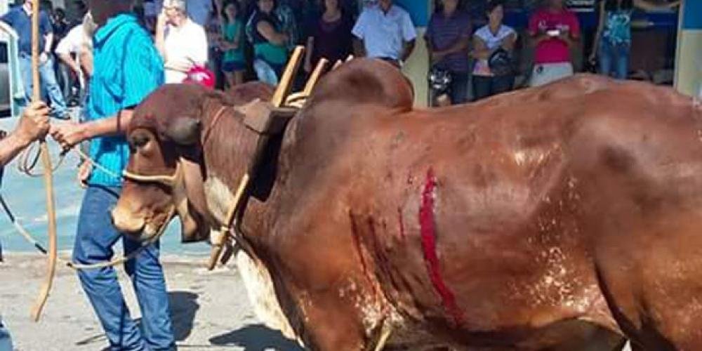 Machucado e cansado, boi é obrigado a puxar carro de boi