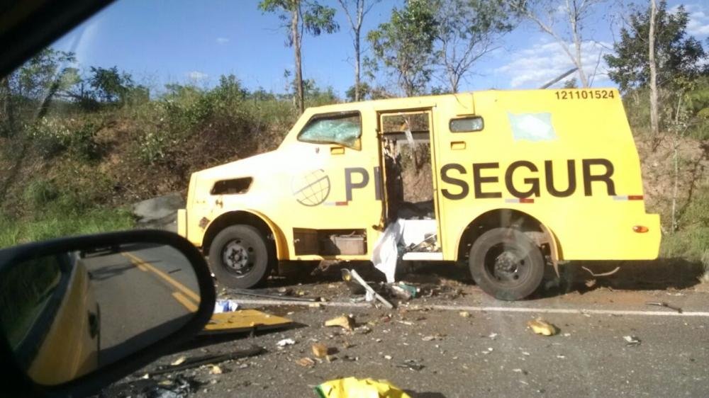 Pelo menos três homens – fortemente armados com fuzis calibre 556 a bordo de uma Toyota Hilux SW4 preta – conseguiram explodir e roubar malotes