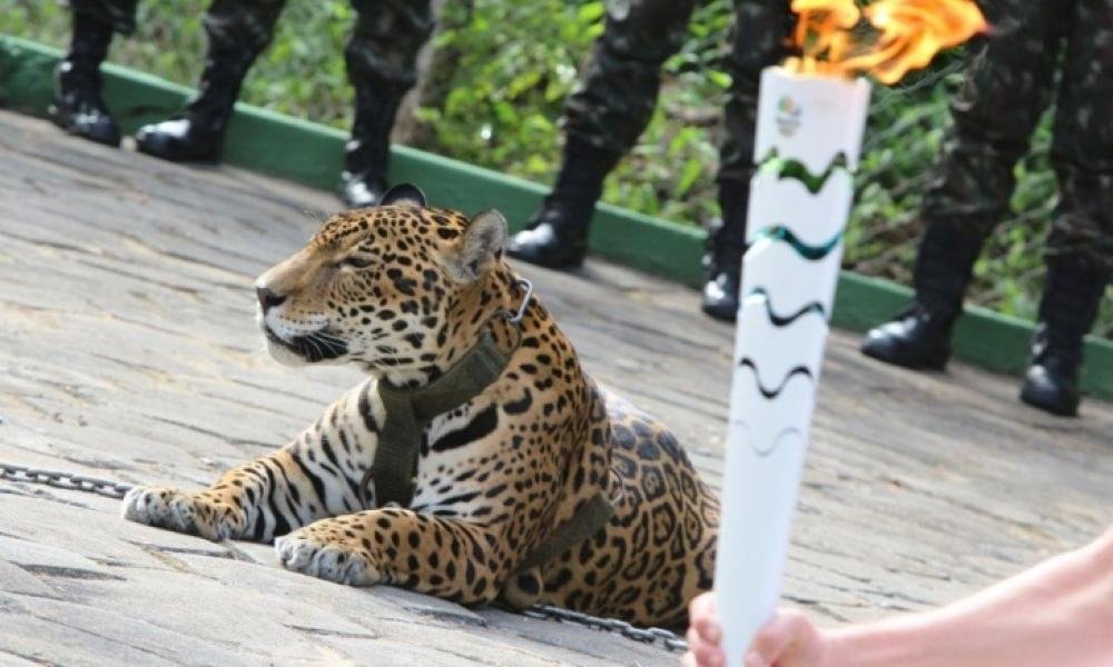 As coisas pareciam estar indo bem no desfile de revezamento da Tocha Olímpica, em Manaus (AM), nesta segunda-feira (20), até a onça Juma, que teria