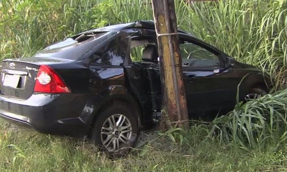 Após perder controle, motorista roda na pista e bate veículo em poste