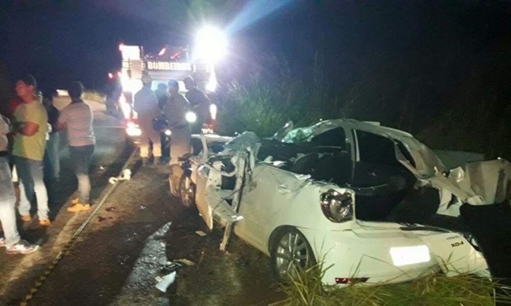 Uma mulher morreu e outras duas pessoas ficaram feridas após colisão frontal entre um carro e um caminhão, na noite de ontem (28), entre Aurilândia