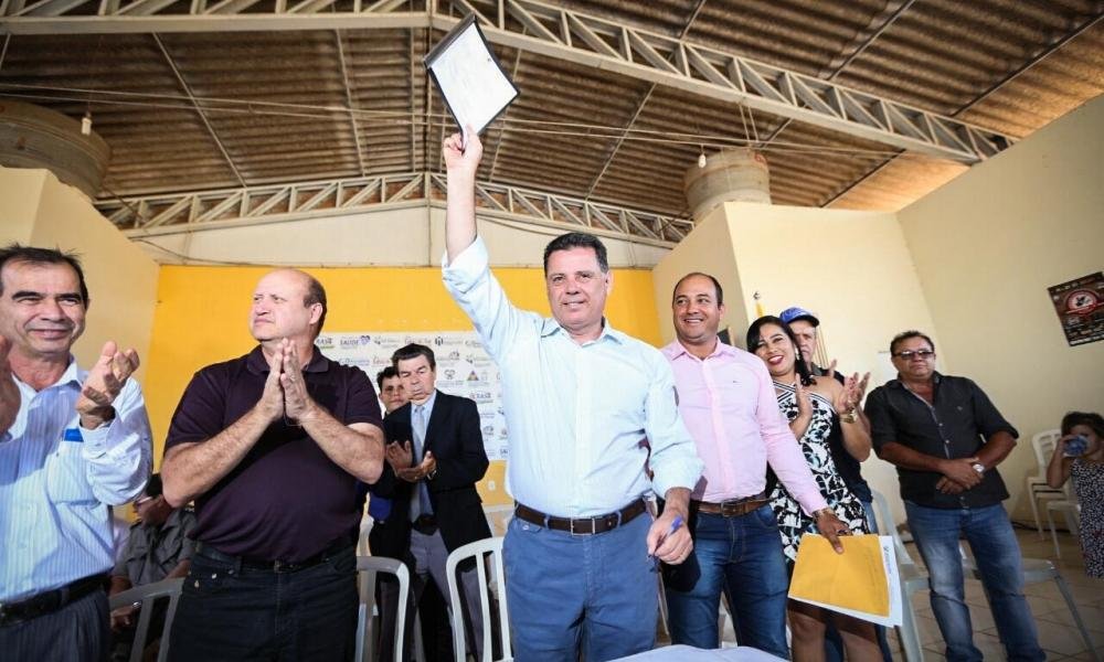 Em um auditório lotado, o governador Marconi Perillo assinou na tarde do dia 26, com o prefeito de Nova Glória, Carlinhos, convênio de R$ 1