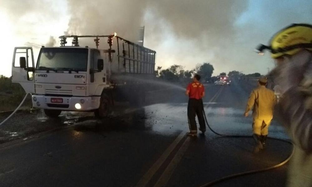 O Corpo de Bombeiros Militar em Uruaçu atendeu no início da noite de ontem (19), uma ocorrência de incêndio em caminhão boiadeiro. O veículo transportava