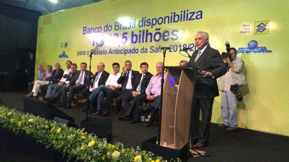 O governo federal liberou R$ 12,5 bilhões para financiar a safra agrícola de 2018 e 2019. O lançamento do custeio antecipado da nova safra foi