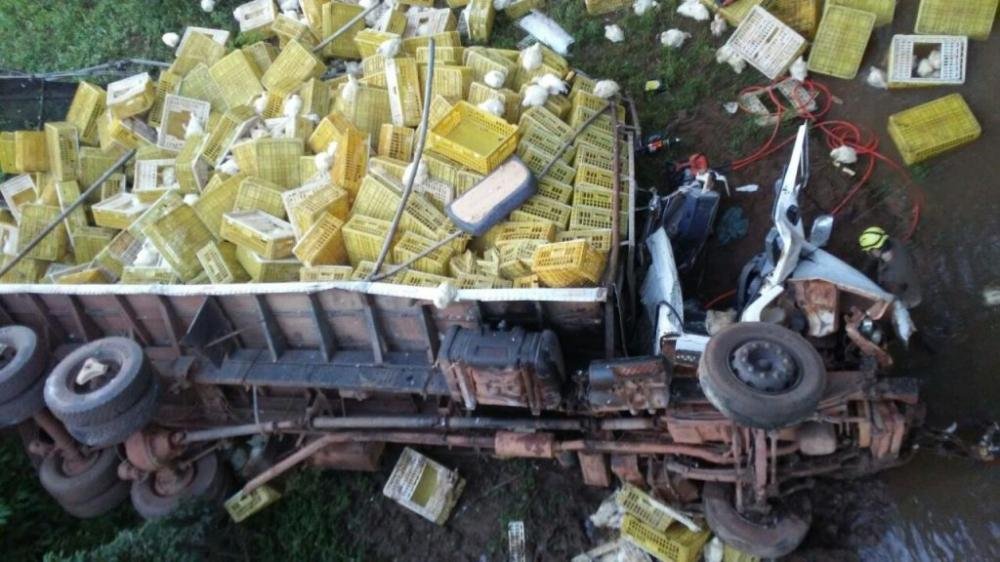 Na madrugada desta quarta-feira (21), um motorista de um caminhão ficou ferido após perder o controle da direção e cair em uma ribanceira, na GO-330,