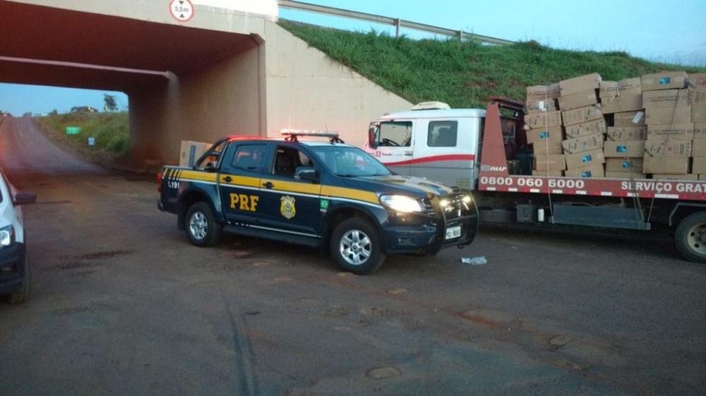 Na madrugada desta quinta-feira (22), um caminhão baú que transportava 1,2 mil caixas de cigarros contrabandeados, avaliadas em R$ 1,2 milhão, foi apreendido na BR-153,