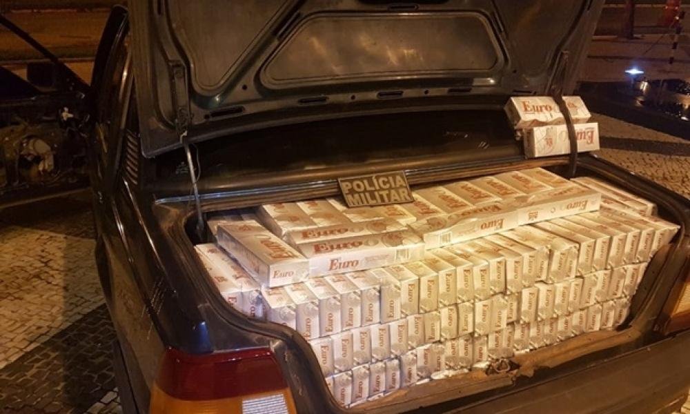 Aproximadamente 1,5 mil pacotes de cigarros foram apreendidos do porta-malas de um veículo pela Polícia Militar (PM) na noite de ontem (23) na Avenida Ademar Vicente