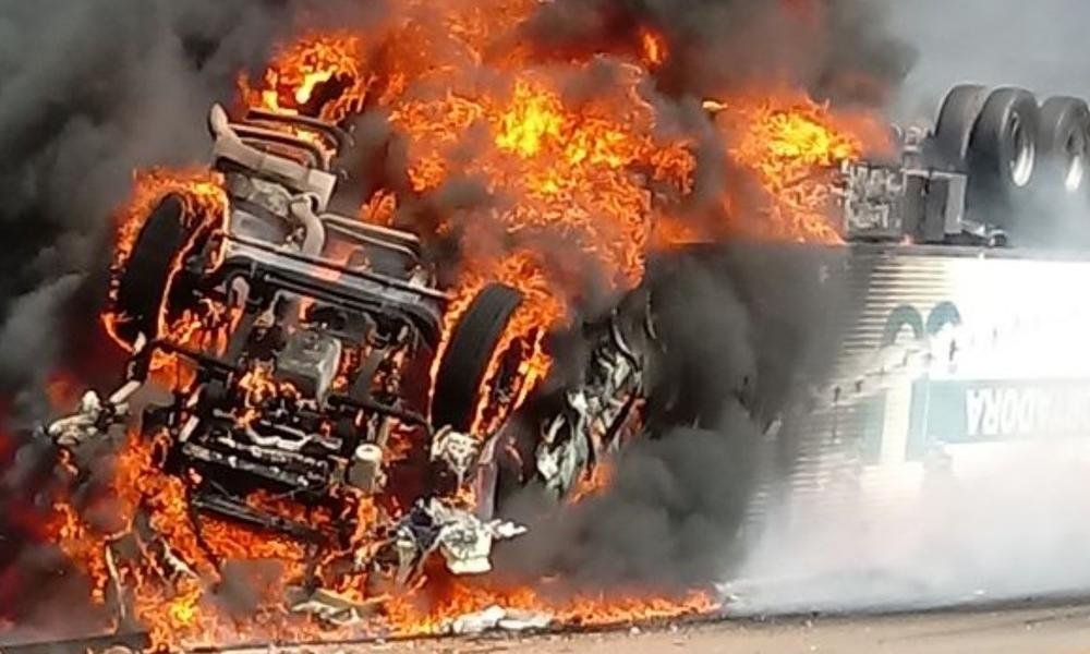 Um idoso de 70 anos morreu após o caminhão que ele dirigia capotar e pegar fogo na BR-080, próximo a Barro Alto no norte de