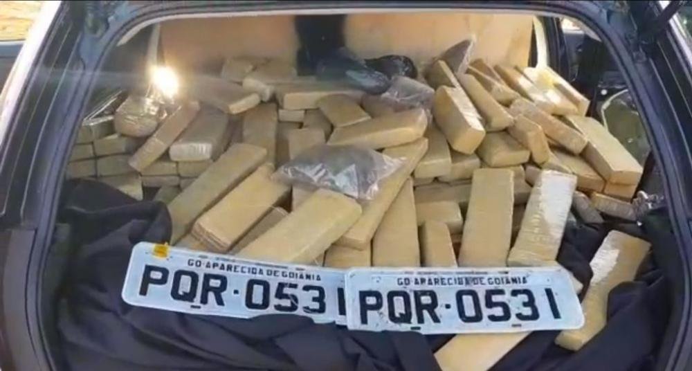 Na sexta-feira (9), agentes do Comando de Operações de Divisas (COD) apreenderam 800 kg de maconha na GO-184 em Jataí. Enquanto um carro Toyota Ethios