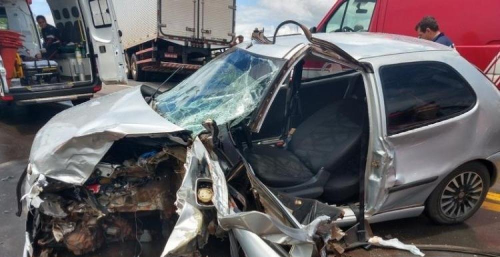No final da manhã desta segunda-feira (5), um caminhão baú placa do Paraná carregado com cadeiras e um Fiat Pálio placa de Uruaçu se envolveram