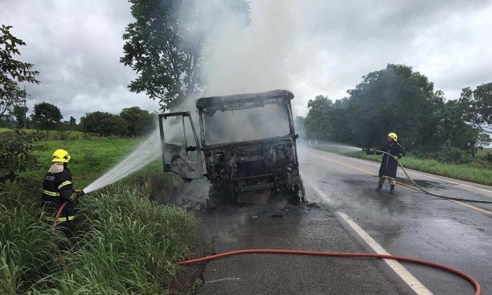 Em Porangatu, Bombeiros Militares combatem incêndio em caminhão na BR-153