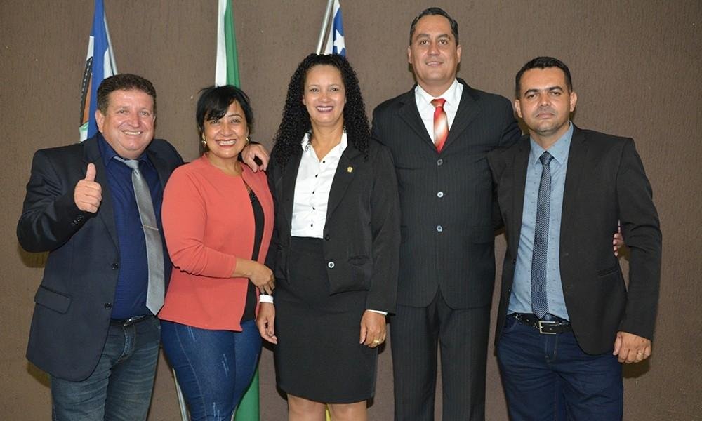 Os eleitos, Walmir primeiro secretário, Meire Matias vice-presidente, Henia Alves presidente, Paulinelly Carneiro segundo secretário e o atual presidente Antônio Ferreira, o Toninho com a
