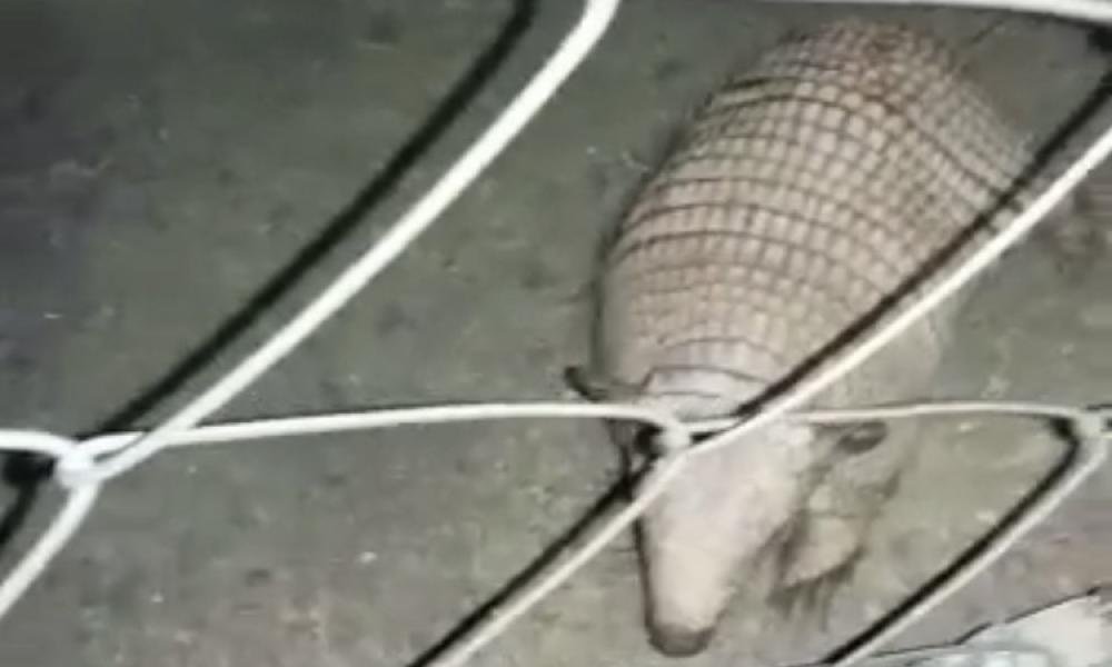 Um tatu, animal adulto, foi resgatado pela Polícia Rodoviária Federal (PRF) na madrugada de hoje (22), quando foi encontrado nas dependências da Unidade Operacional da