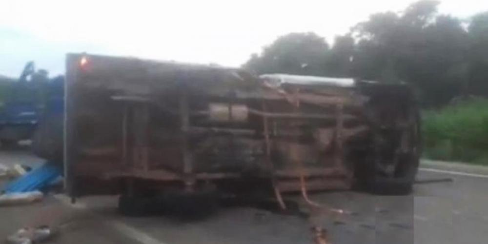 Na manhã de quinta-feira (7), uma caminhonete Toyota Hilux tombou na rodovia BR-153, no km 317, próximo à Rianápolis, após o condutor cair em um