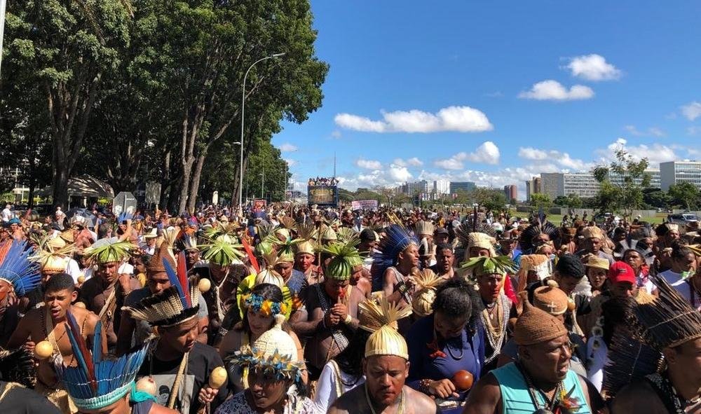 Indígenas de todo país, reunidos em Brasília para a 15ª edição do Acampamento Terra Livre, protestaram na Esplanada dos Ministérios nesta sexta-feira (26). Alguns chegaram a