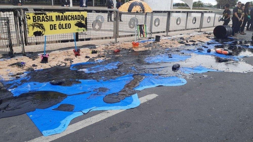 Na manhã desta a quarta-feira (23) ativistas ambientais do Greenpeace jogaram tinta preta na entrada do Palácio do Planalto, em Brasília. O ato simbolizava as