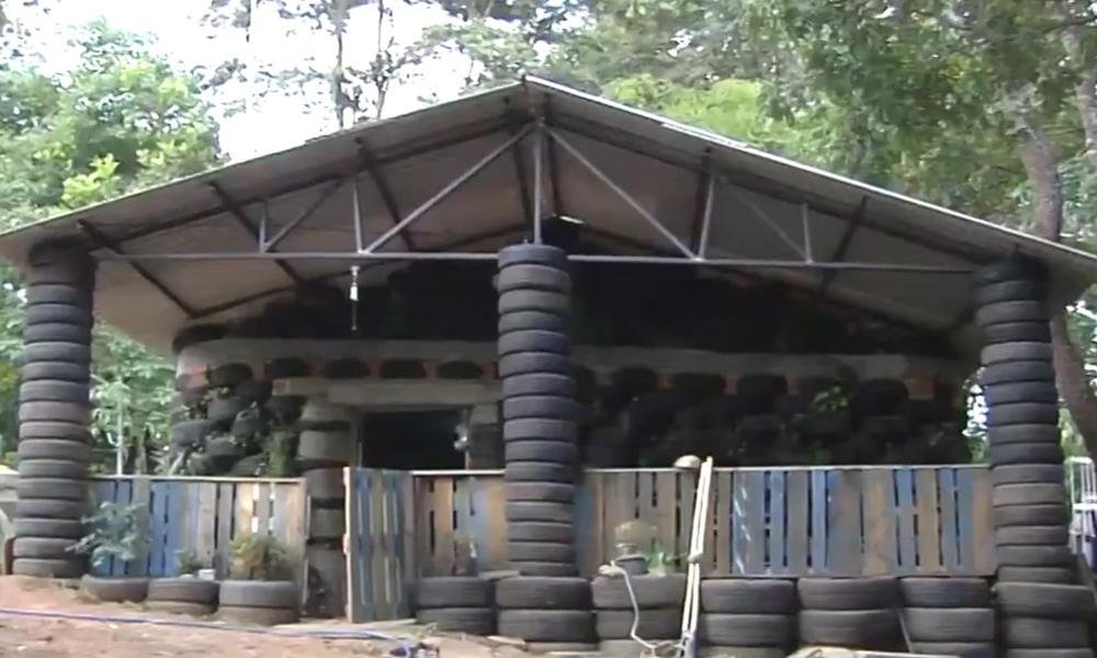 O casal Sandra e Lídio Silva decidiu construir a própria casa utilizando pneus usados e abandonados, em Aparecida de Goiânia, na Região Metropolitana da capital.