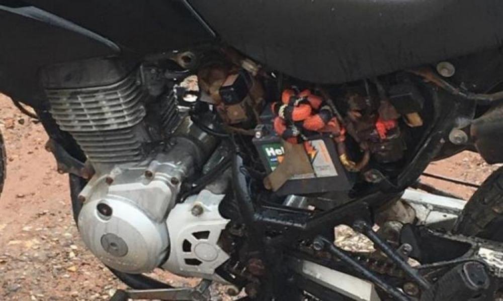 Uma cobra que estava escondida no motor de uma moto foi resgatada pelo Corpo de Bombeiros de Jaraguá. A coloração vermelha do réptil chamou a
