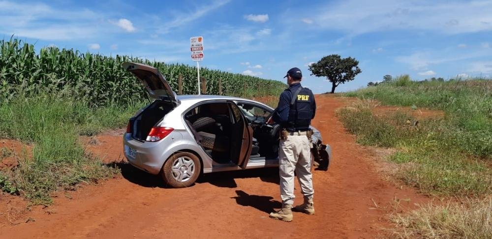 Uma equipe da Polícia Rodoviária Federal (PRF) em patrulhamento na rodovia BR 060, próximo a Acreúna, abordou um veículo GM Onix com três pneus furtados