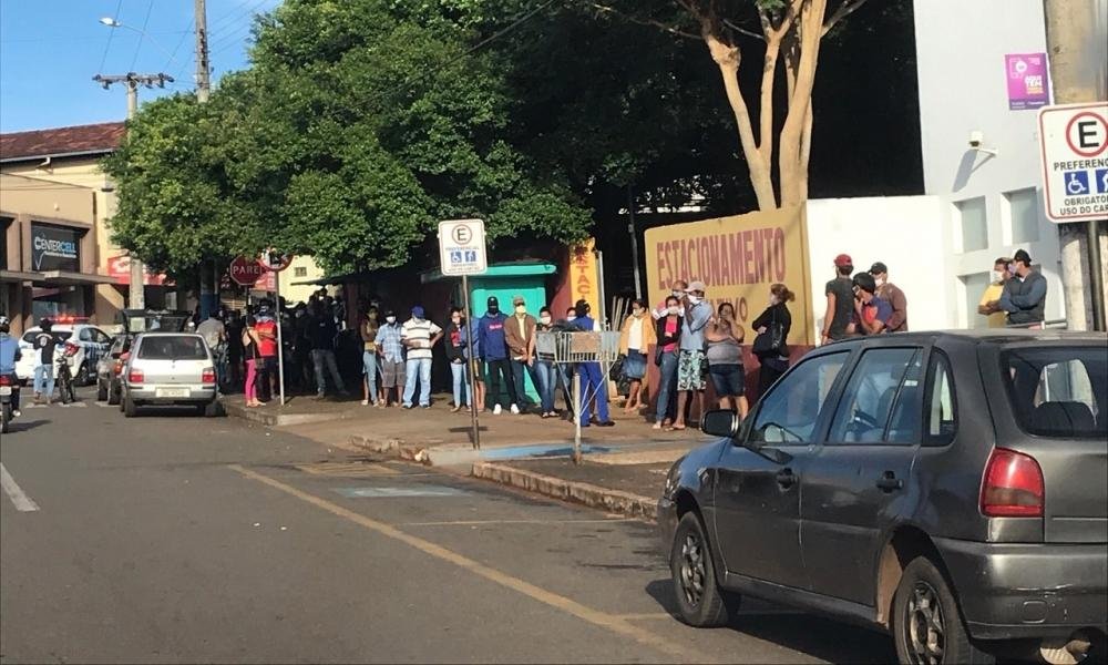 A agência da Caixa Econômica Federal de Ceres, que fica na rua 17, amanheceu com longa fila e aglomeração de pessoas que optaram por fazer