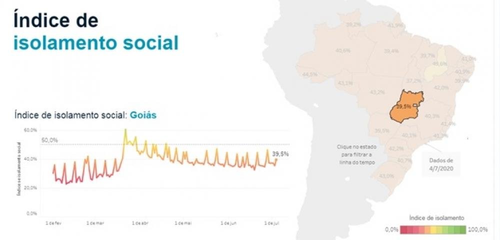 O isolamento social em Goiás segue abaixo do esperado pelas autoridades, com índice de 39,5%. A informação é do portal inloco e é referente ao