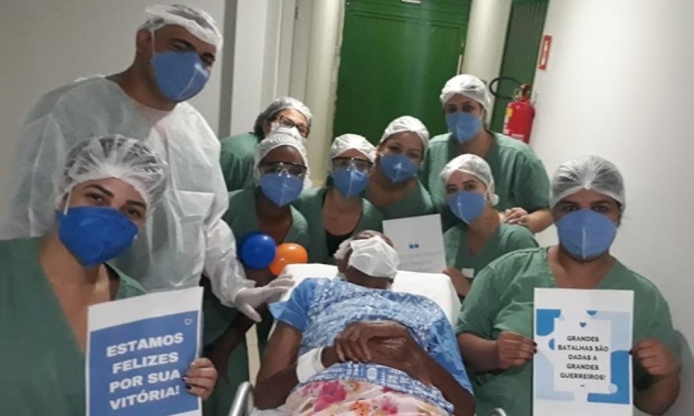 O Hospital Regional de Itumbiara São Marcos comemorou a alta de Guiomar Helena de Oliveira, que venceu a Covid-19 aos 105 anos de idade. Após