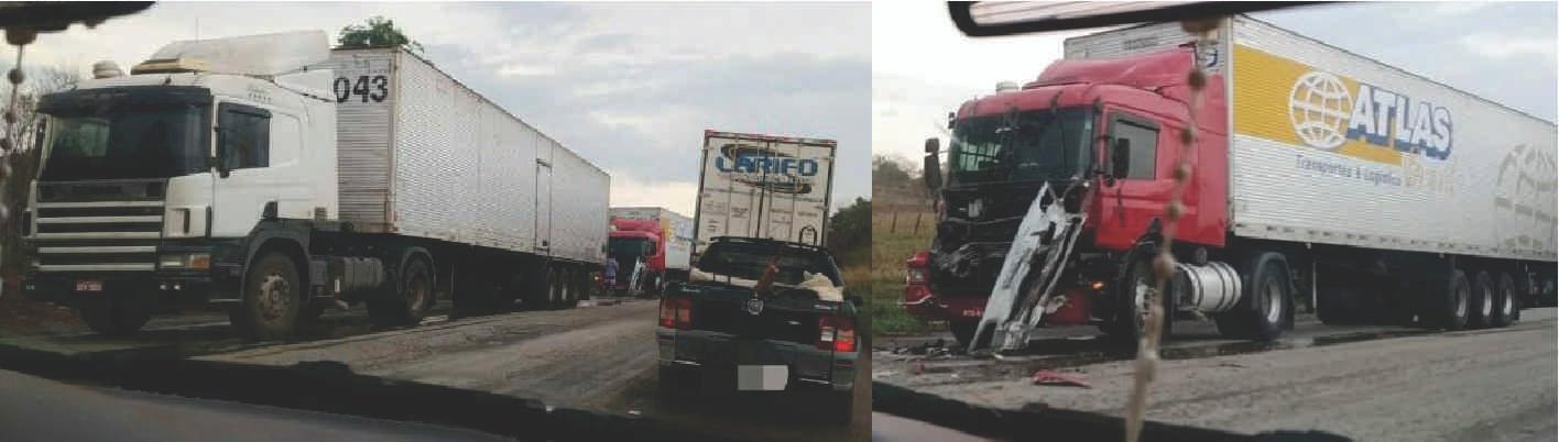 Na tarde desta quinta-feira (15) por volta de 16h10, duas carretas se envolveram em um acidente de trânsito no Km-283 na rodovia BR 153, entre