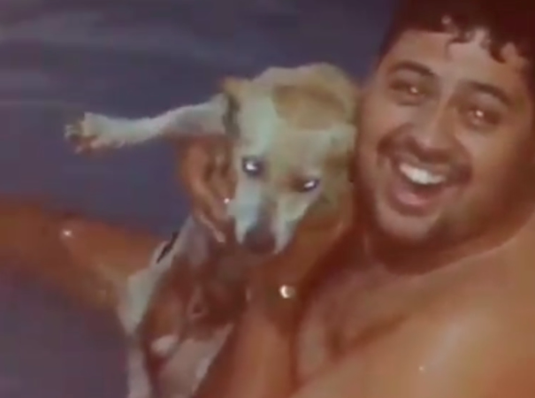 Em Crixás, candidato “brinca” de afogar cachorro em piscina de plástico