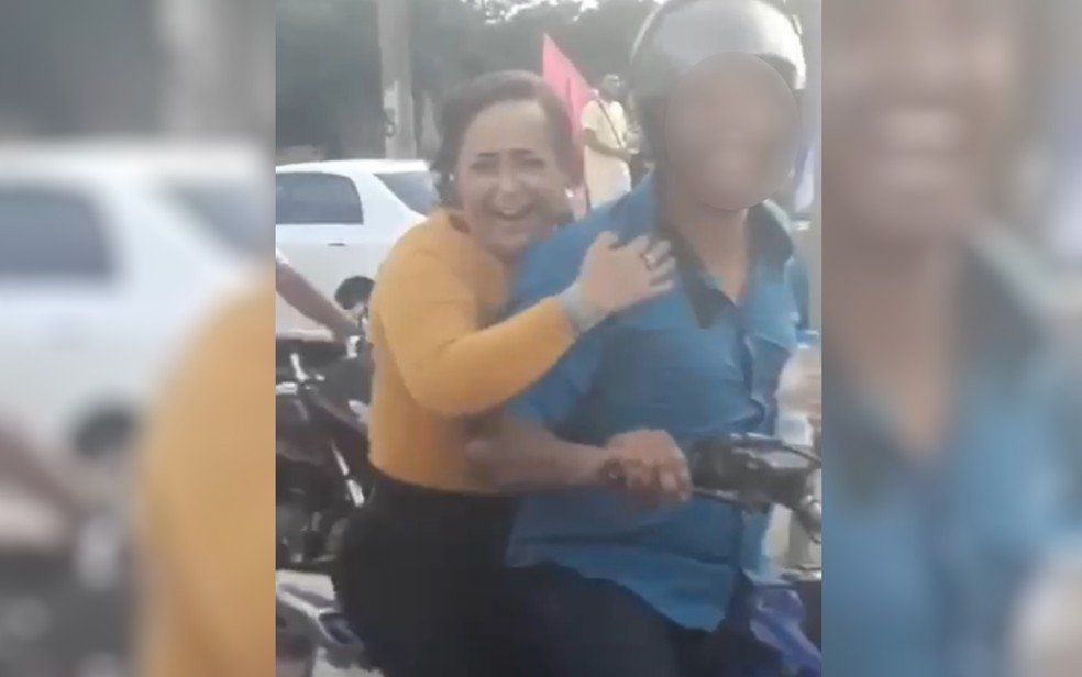 A prefeita de Santa Isabel e candidata à reeleição, Cássia Dourado (PSDB), foi flagrada na garupa de uma moto sem usar máscara nem capacete durante