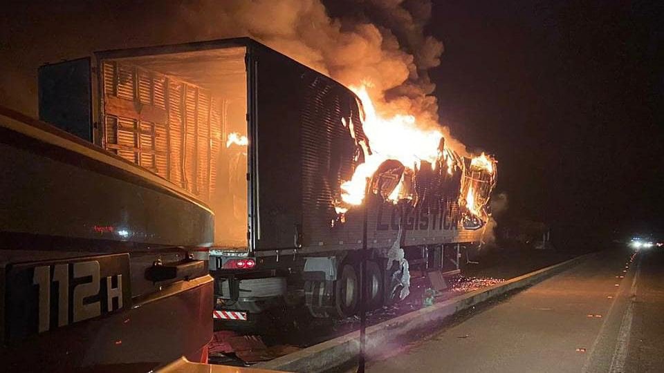 As chamas atingiram somente a carreta do caminhão pois o motorista conseguiu separar o cavalo do veículo antes que as chamas alcançassem a frente do veículo