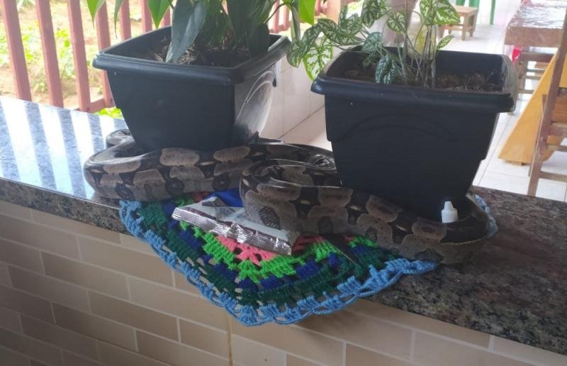 Na tarde desta segunda-feira (28), uma moradora da cidade de Itapaci, levou um susto ao ver uma cobra de quase dois metros com aproximadamente 4kg