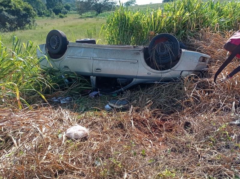 Um veículo capotou na manhã de hoje (1) por volta de 08h30, na rodovia GO 154 entre Uruana e Carmo do Rio Verde. Um GM/Astra