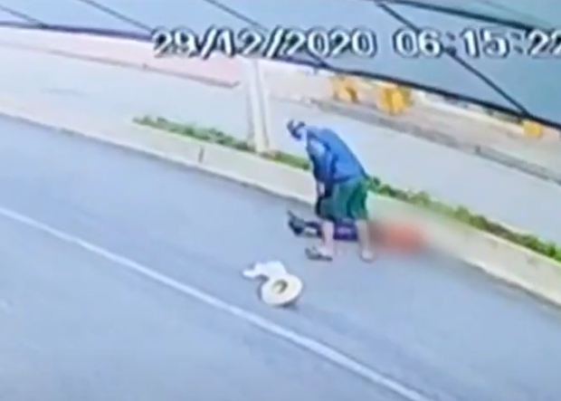 Idoso bate cabeça em mureta ao ser agredido por assaltante; Vídeo