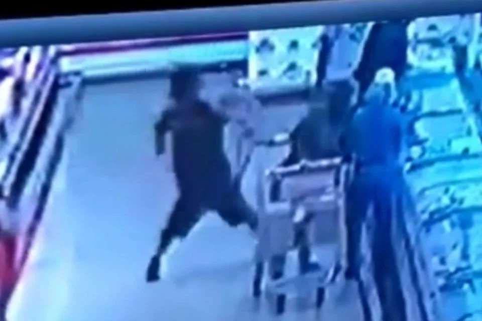 As câmeras de segurança de um supermercado de Valparaíso de Goiás, no Entorno do Distrito Federal, flagram o momento em que um homem esfaqueia uma