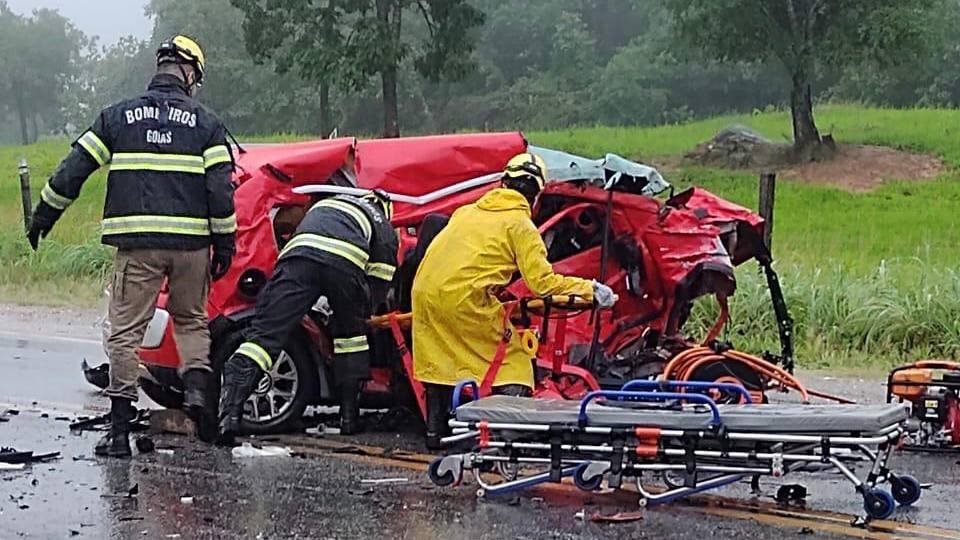 A chuva que cobre o Estado neste sábado (6) causou o acidente entre dois carros na rodovia BR-153 em Santa Tereza de Goiás. Um dos