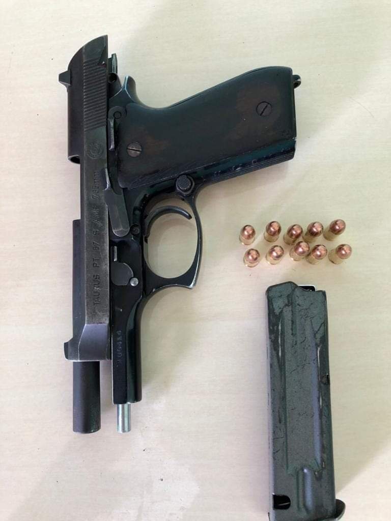 Encontraram escondido dentro de um sofá, uma arma de fogo tipo, Pistola TAURUS MODELO PT 57, calibre 765 e um carregador com 10 munições intactas.