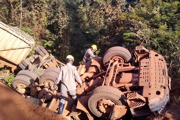 Em Goianésia, caminhão capota em estrada vicinal e deixa uma vítima fatal