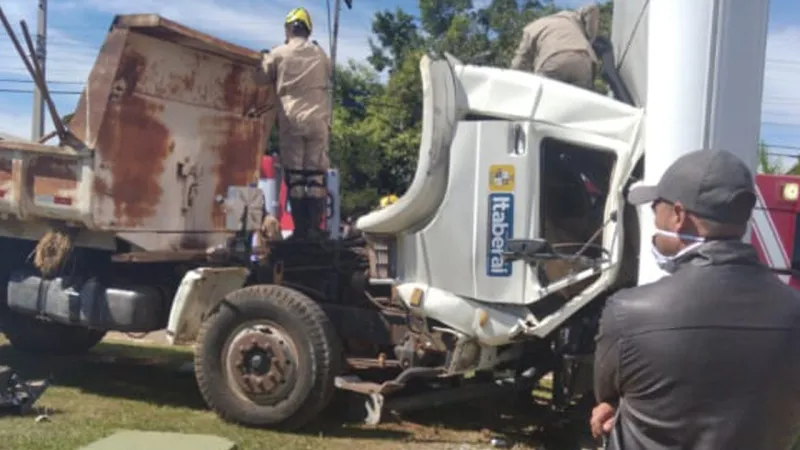 Caminhão de prefeitura colide com placa após cabine se soltar em Itaberaí