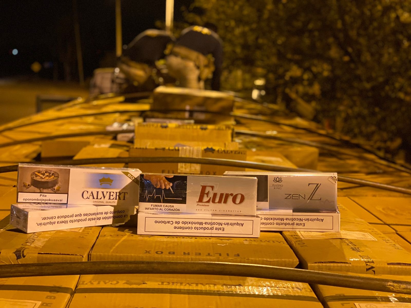 Uma carga de 420 mil maços de cigarros avaliada em R$ 2,1 milhões foi apreendida pela Polícia Rodoviária Federal (PRF), na tarde desta quarta-feira (25),