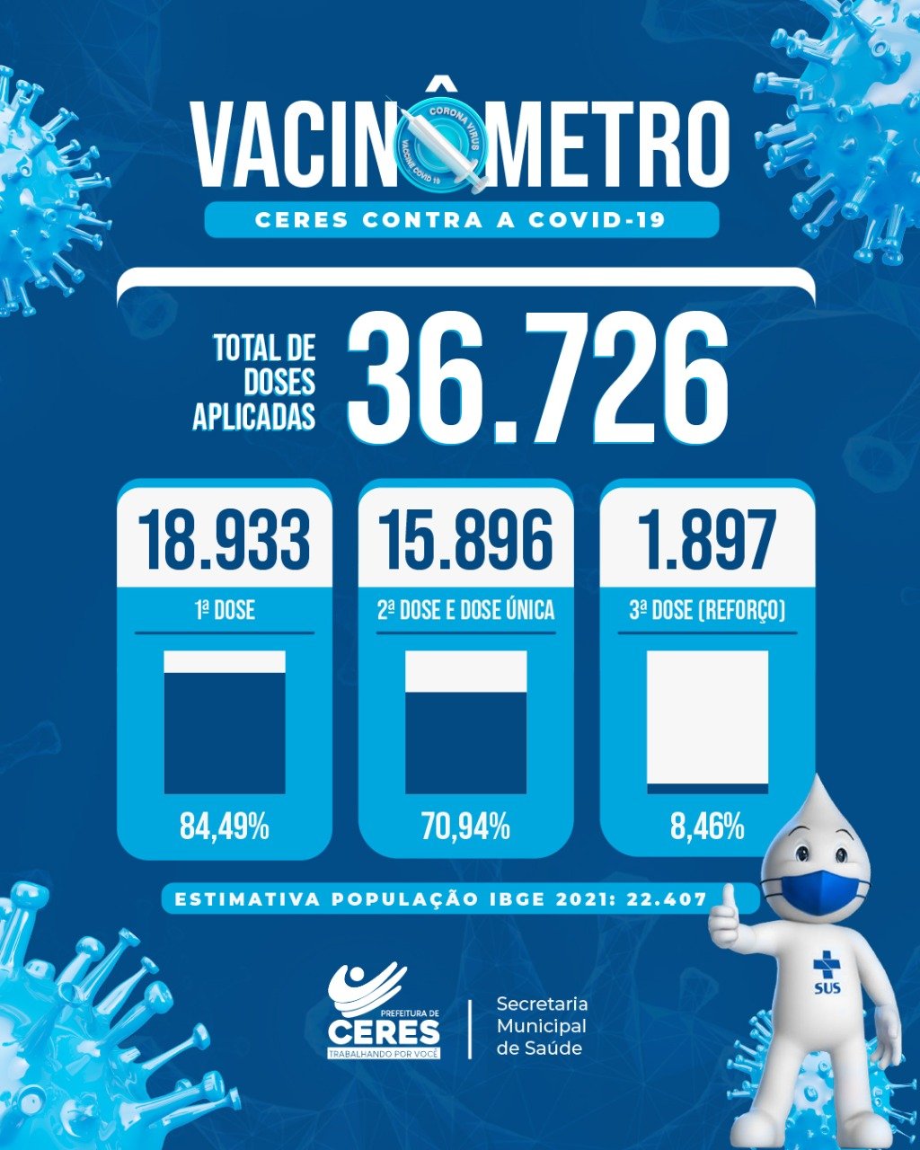 A vacinação continua dentro do cronograma determinado pelo Ministério da Saúde e mesmo com os excelentes números da vacinação em Ceres a Secretaria recomenda a população que mantenha os cuidados sanitários para prevenir o contágio, usando máscara, higienizando as mãos e evitando aglomerações.