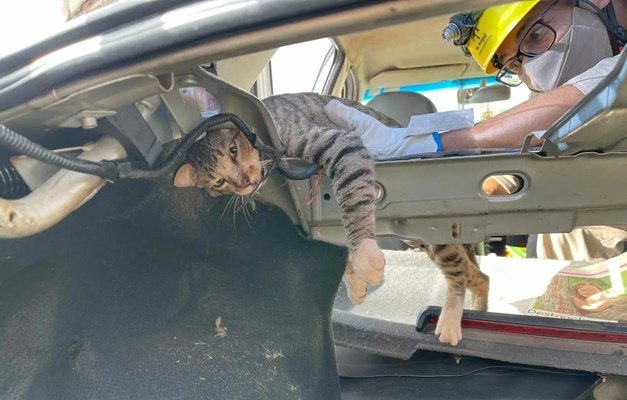 O Corpo de Bombeiros chamou um veterinário sedar o animal para a retirada.