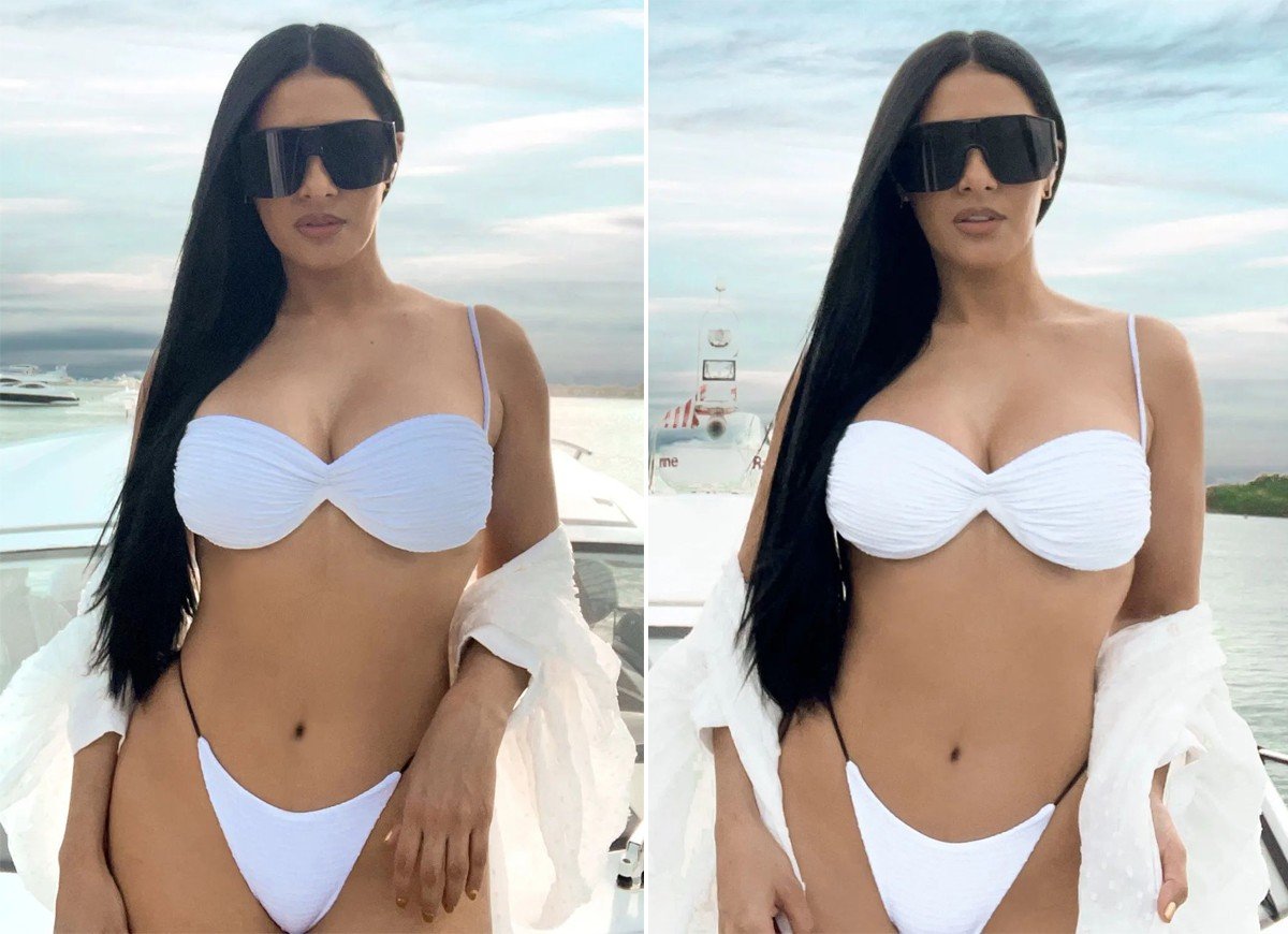 A sertaneja chamou atenção da web ao surgir usando um biquíni mínimo durante um passeio de barco.