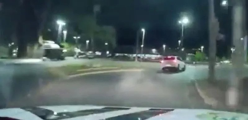 A câmera dentro da PM policial registrou a perseguição pela Avenida JK, no bairro Jundiaí.