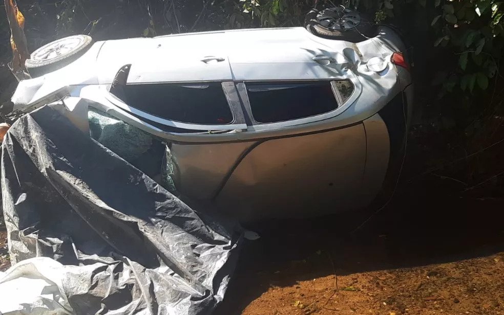 Conforme o Corpo de Bombeiros, o carro caiu em um córrego da cidade após passar em alta velocidade em uma viela. Duas pessoas foram lançadas para fora do veículo.