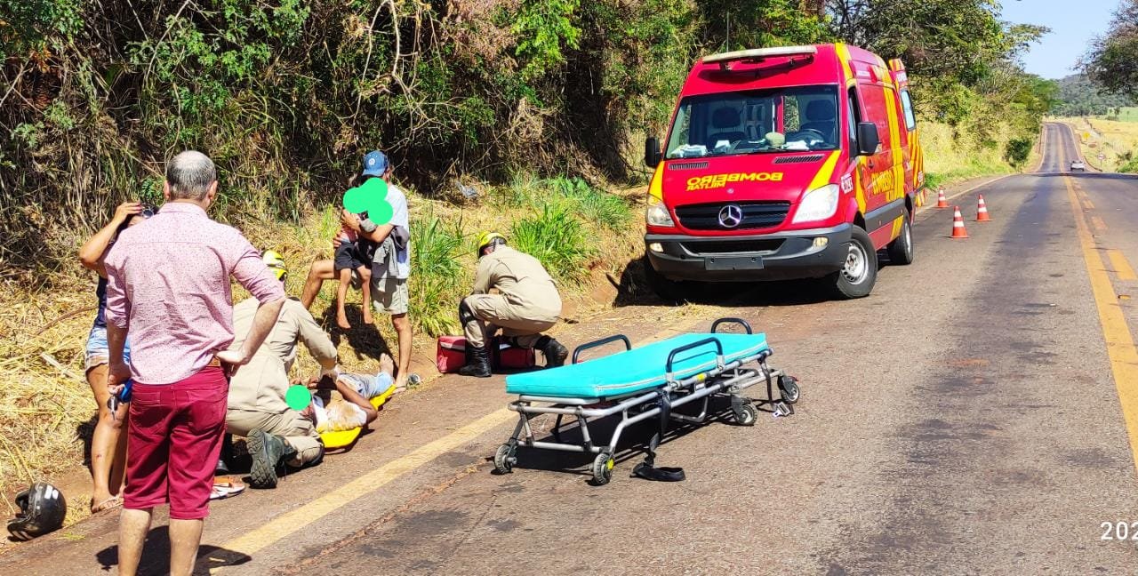 Conforme a corporação, no local, a guarnição se deparou com um acidente do tipo queda de moto, com três pessoas feridas, sendo dois adultos de 32 e 41 anos e uma criança de 6 anos.