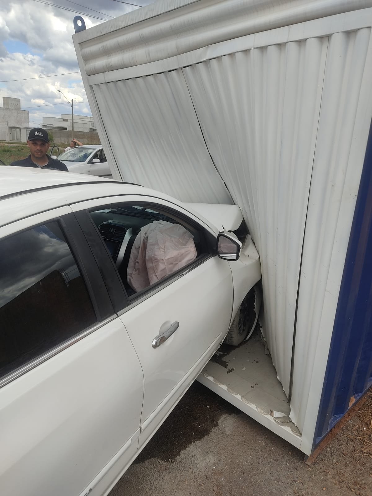 Em Goianésia, carro bate em container e deixa uma pessoa ferida