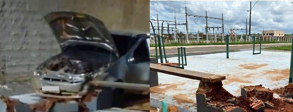 Em São Francisco de Goiás, condutor de veículo perde controle do veículo e destrói banco de praça