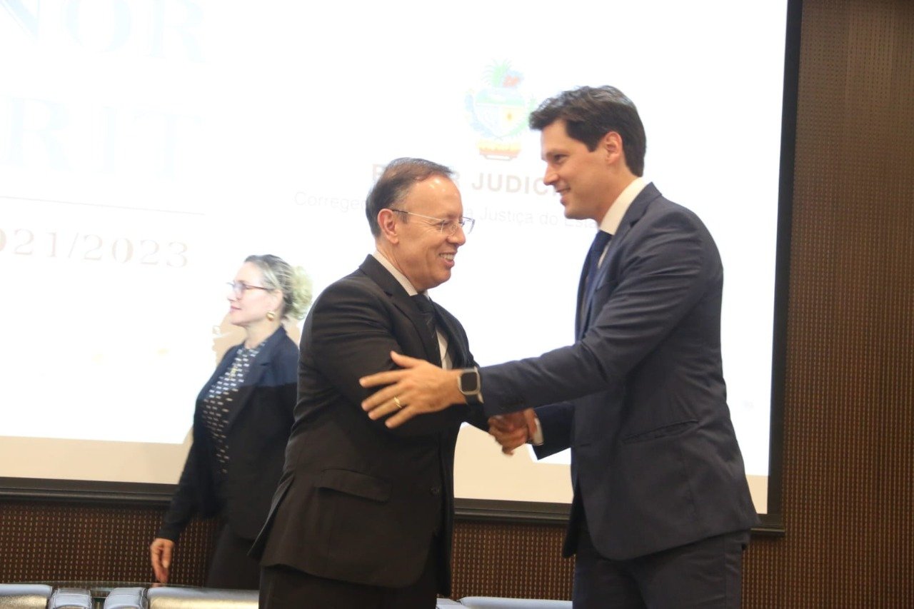 O vice-governador Daniel Vilela destacou a importância da boa harmonia entre os Três Poderes durante entrega da Comenda Homero Sabino no auditório do Tribunal de Justiça de Goiás (TJ-GO), na tarde desta quinta-feira (26), em Goiânia. Na ocasião, foram homenageados o presidente do órgão, desembargador Carlos França, além de magistrados e juristas.