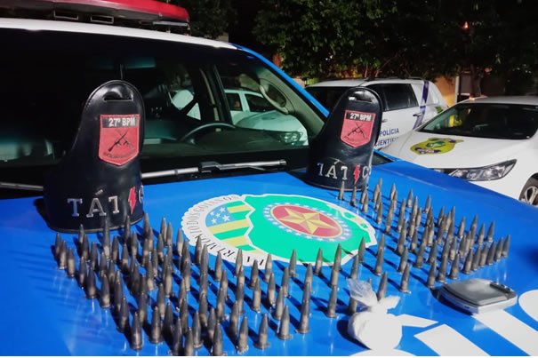 Autuado em flagrante, pelo mesmo crime, o suspeito foi conduzido para a Delegacia de Polícia Civil local, juntamente com 143 pinos de cocaína, uma porção de cocaína, uma balança de precisão e o dinheiro da venda dos entorpecentes. Foi estimado o prejuízo ao tráfico de drogas em R$ 5 mil.